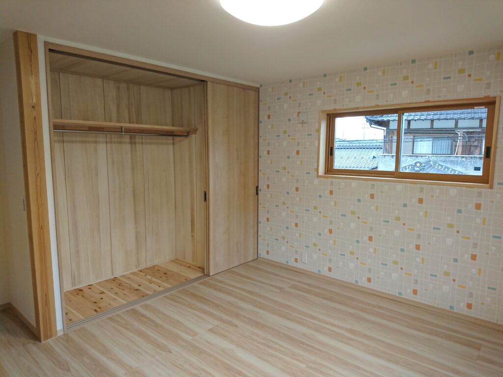 いつもの仕様とは違い、シューズクロークは無しになっており、代わりに建材のクローゼットが取り付けられております。