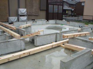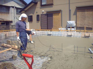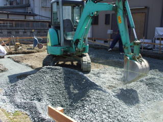 基礎工事です。砕石を敷き天圧し、鉄筋を組コンクリートを打ちます。
