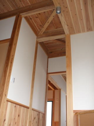 柱を化粧で見せる真壁構造で、壁の内々が大きく取れます。
