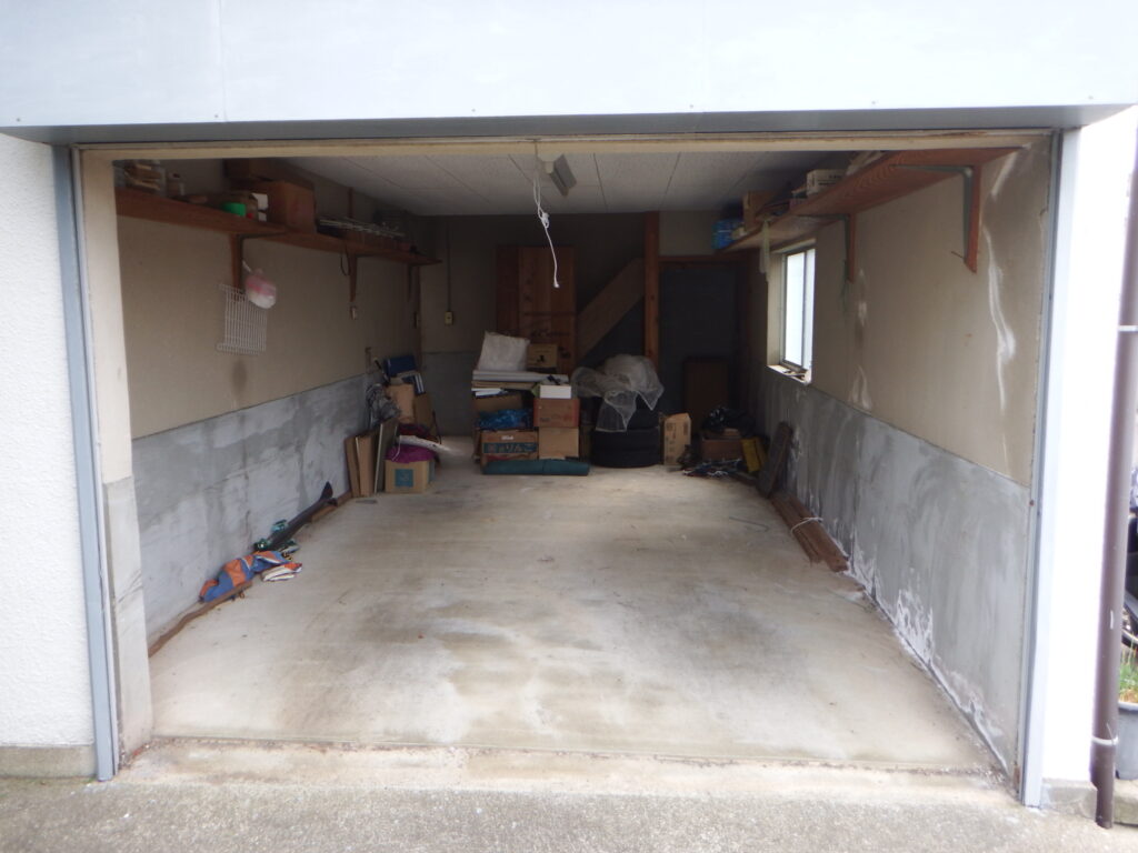 こちらは車庫になります。こちらの床を上げて、くつろぎスペースにしていきます。続きまして・・・