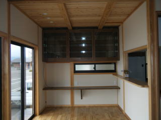ダイニングにもオーダーメイドの天袋を付け、その下にカウンターを付けました。