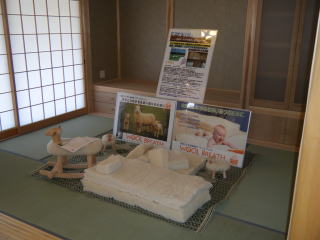 左の写真は、羊毛断熱材のプレゼン。この家には最近にしては珍しく和室の2間続きがあります。