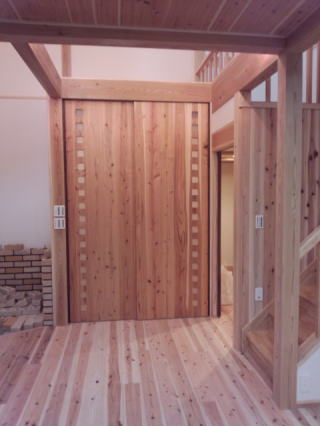 このお家の扉は、全て杉の無垢材で造ってあり、周りの雰囲気にピッタリ。