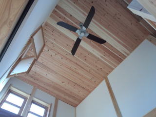 薪ストーブの暖気を、この空間にてかくはんし、家全体が暖まります。
