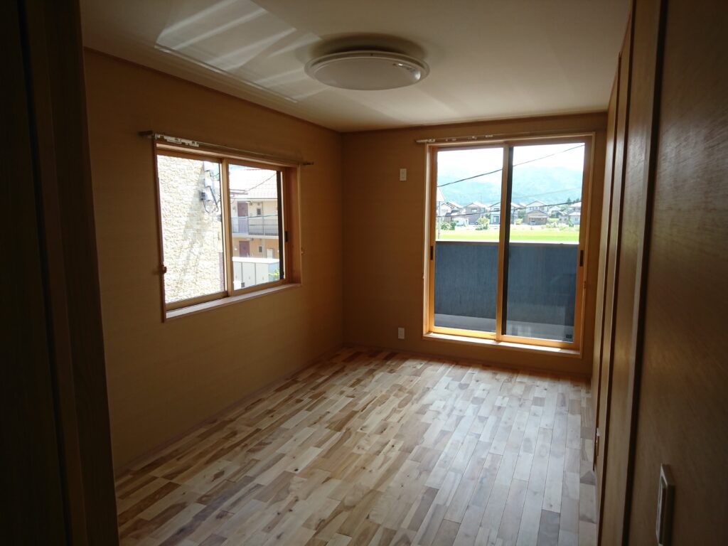 6帖の洋室。こちらでピアノの演奏をするということで、床・壁・天井には防音材料を使用しております。