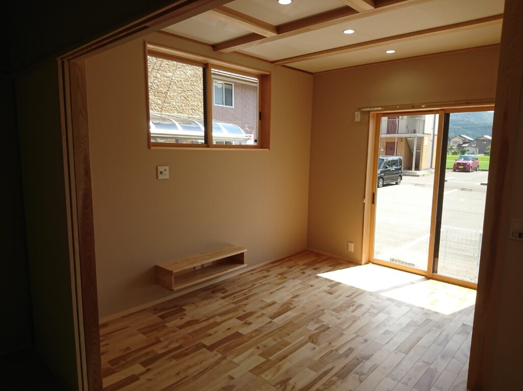こちらはリビングスペースです。備え付けられたTVボード(当社作成)の上に壁掛けテレビが設置されます。