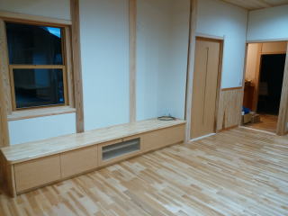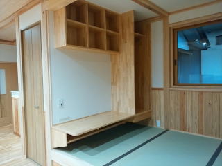居間には畳コーナーが有り、造り付けの家具を設置してあります。